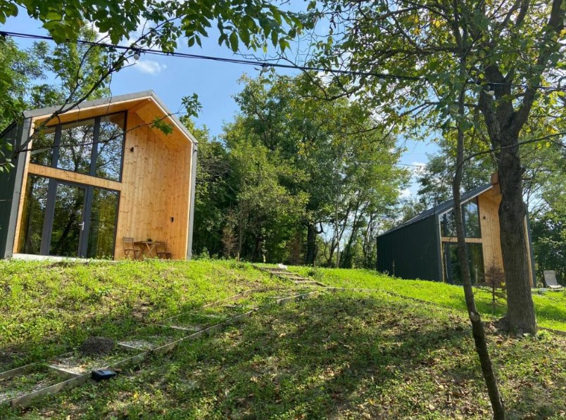 O cabana cu 2 dormitoare, o gradina spatioasa, un loc de joaca pentru copii, dar si un lounge comun unde va veti putea relaxa.