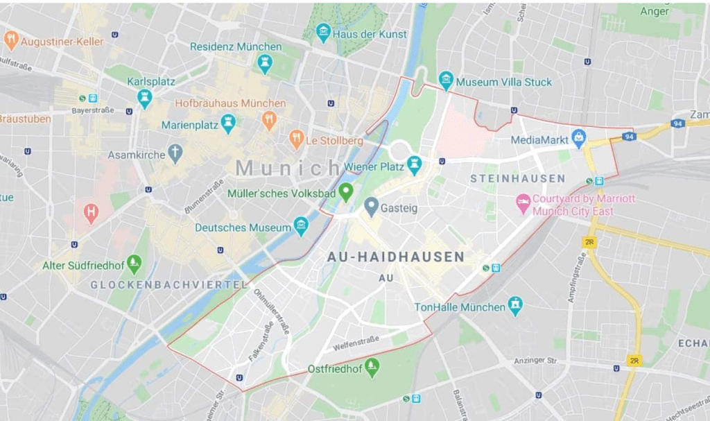 Este una dintre zonele mele preferate din oraș și unul dintre cele mai bune locuri de cazare din München. Este cea mai modernă și mai gentrificată zonă a orașului. Aproape de râul Isar, cu zeci de baruri și restaurante cu bucătărie internațională, stați aici dacă doriți să trăiți la maximum experiența Münchenului.